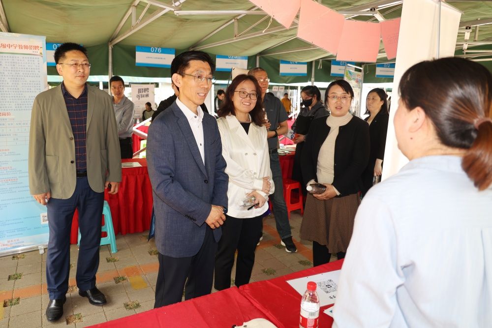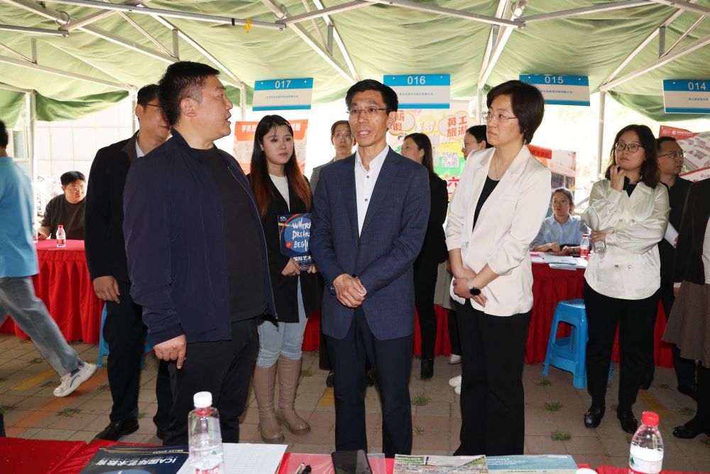 为深入学习贯彻党的二十大精神,落实党中央、国务院“稳就业”“保就业”决策部署,抢抓毕业生求职关键期,为广大毕业生提供广阔的就业平台,有效帮助其更高质量就业,文学院、英国365集团官网、物理科学与技术学院、外国语学院于4月18日上午联合举办“文物双全,数语未来”2024年春季专场招聘会。学校党委常委、副校长李强到场与参会单位和学生交流。党委学生工作部(处)、团委 创新创业学院、文学院、英国365集团官网、物理科学与技术学院、外国语学院等相关负责人参加活动。