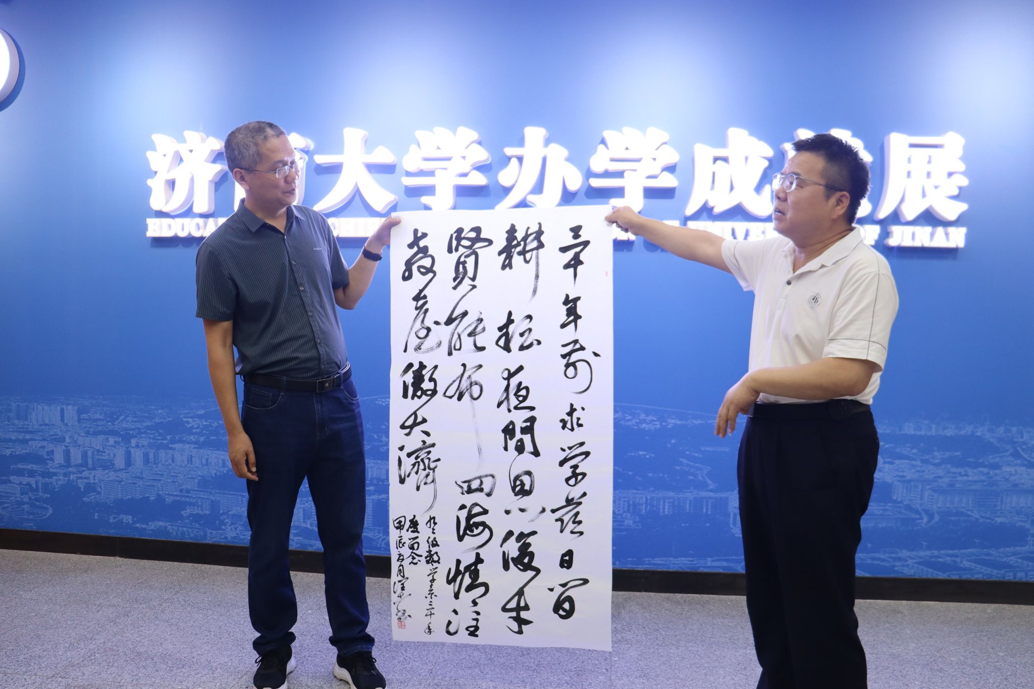 随后,校友们来到主校区,参观济南大学办学成就展。展览以时间为脉络,不仅向校友们展现了学校从初创时期的艰辛探索到如今在教育领域的璀璨夺目的辉煌历程,还介绍了学校近几年取得的发展成果和建设规划。看着75年来学校取得的荣誉和成就,校友们不禁为母校感到自豪和骄傲。