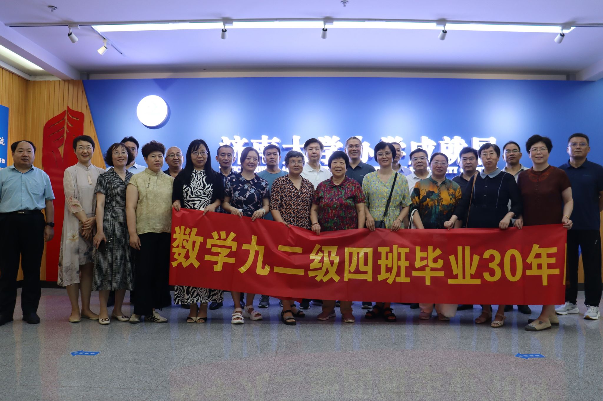 7月6日,数学92级4班校友毕业30年重返校园团聚,共同回顾往昔,展望未来。时任班主任李桂芬老师、辅导员柳春老师,学院院长孙元功、党委副书记、副院长张沂红、副院长靳绍礼参加活动。