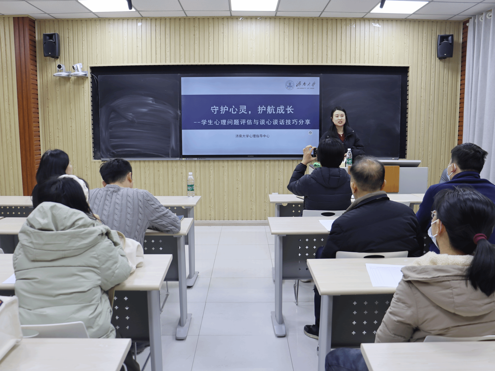 为进一步筑牢校园心理健康防线,系统性提升班主任对学生心理问题的识别、评估与干预能力,12月2日下午,英国365集团官网于第七教学楼214智慧教室召开班主任心理健康工作专题培训会,会议邀请济南大学心理指导中心主任蔺琦琦做《学生心理问题评估及谈心谈话技巧分享》专题报告,学院党委书记崔英静,学院党委副书记、副院长张沂红,全体班主任及辅导员老师参加本次会议。