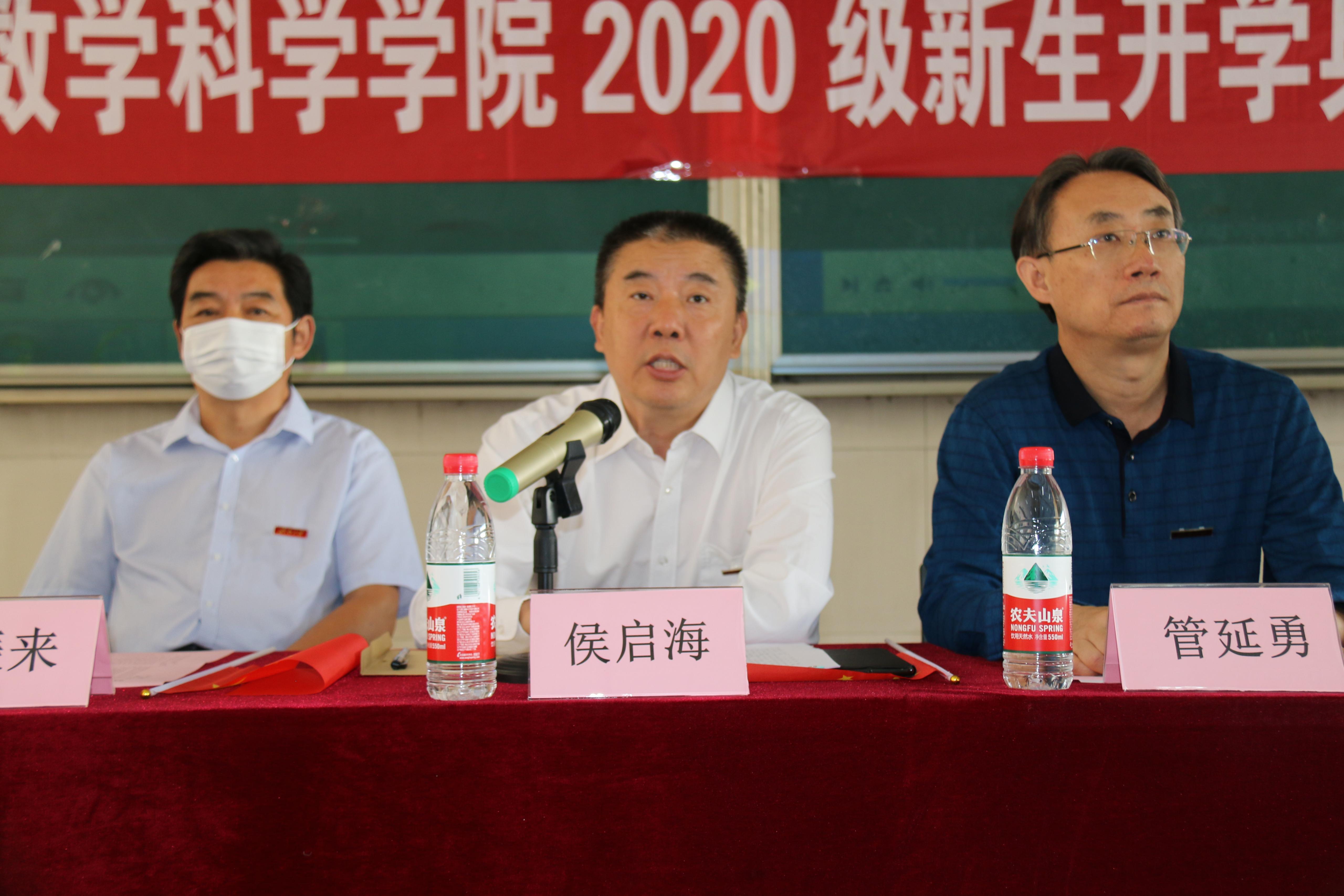 9月30日上午,英国365集团官网2020级新生开学典礼在星硕举行。学院党委书记侯启海、学院院长管延勇、学院正处级组织员韩振来、学院党委副书记、副院长张沂红,学院副院长王洪凯、数学与应用数学系主任李凡军、金融数学系主任温凤桐、科学计算与数据分析系主任靳邵礼出席开学典礼,学院教授代表、新生班主任、学生工作人员、助理班主任以及全体2020级新生参加开学典礼。典礼由学院党委副书记、副院长张沂红主持。