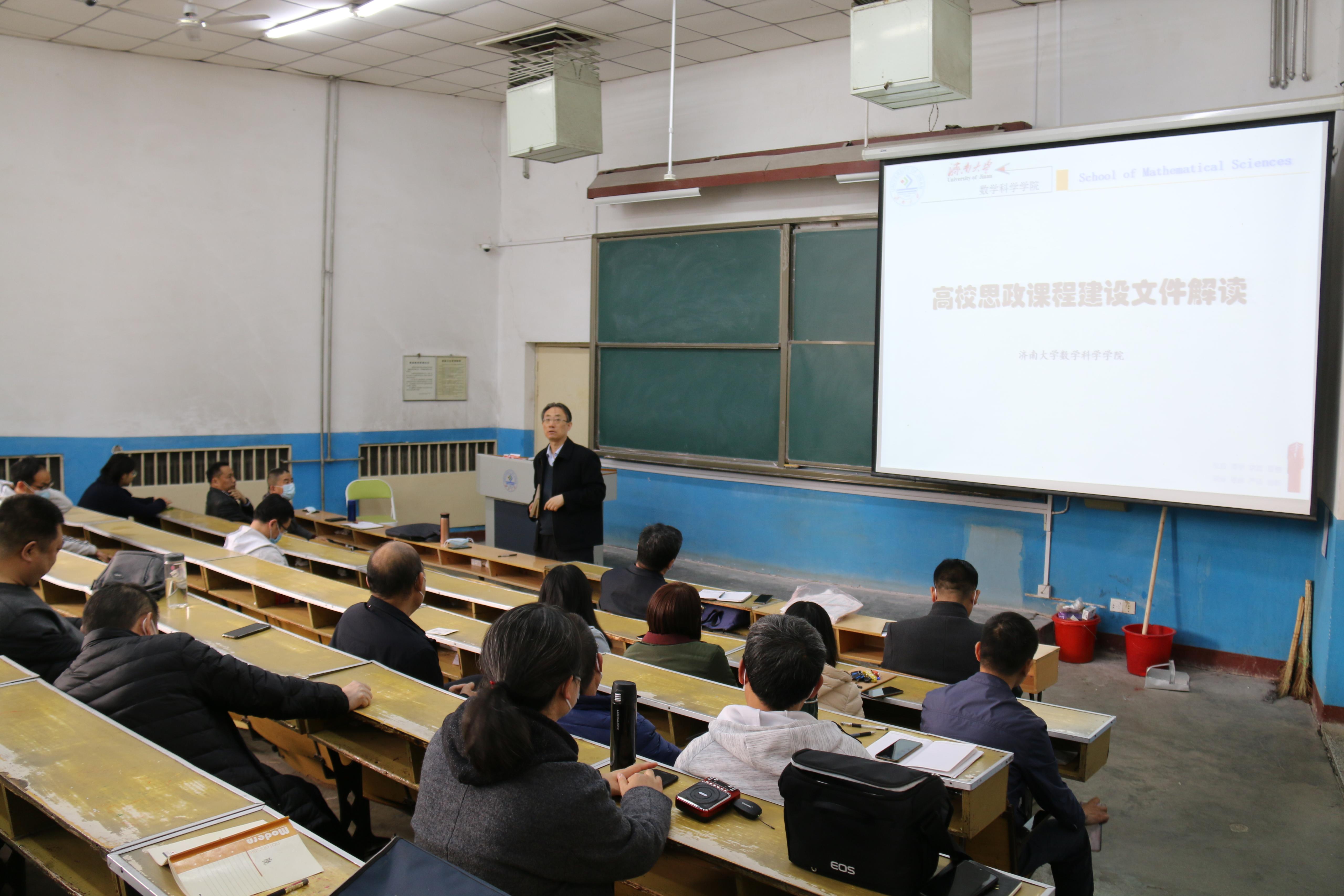 副院长王纪辉带领全体教职工一起学习了教育部《高等学校课程思政建设指导纲要》和学校《关于进一步推进本科教学课程思政建设工作的通知》。