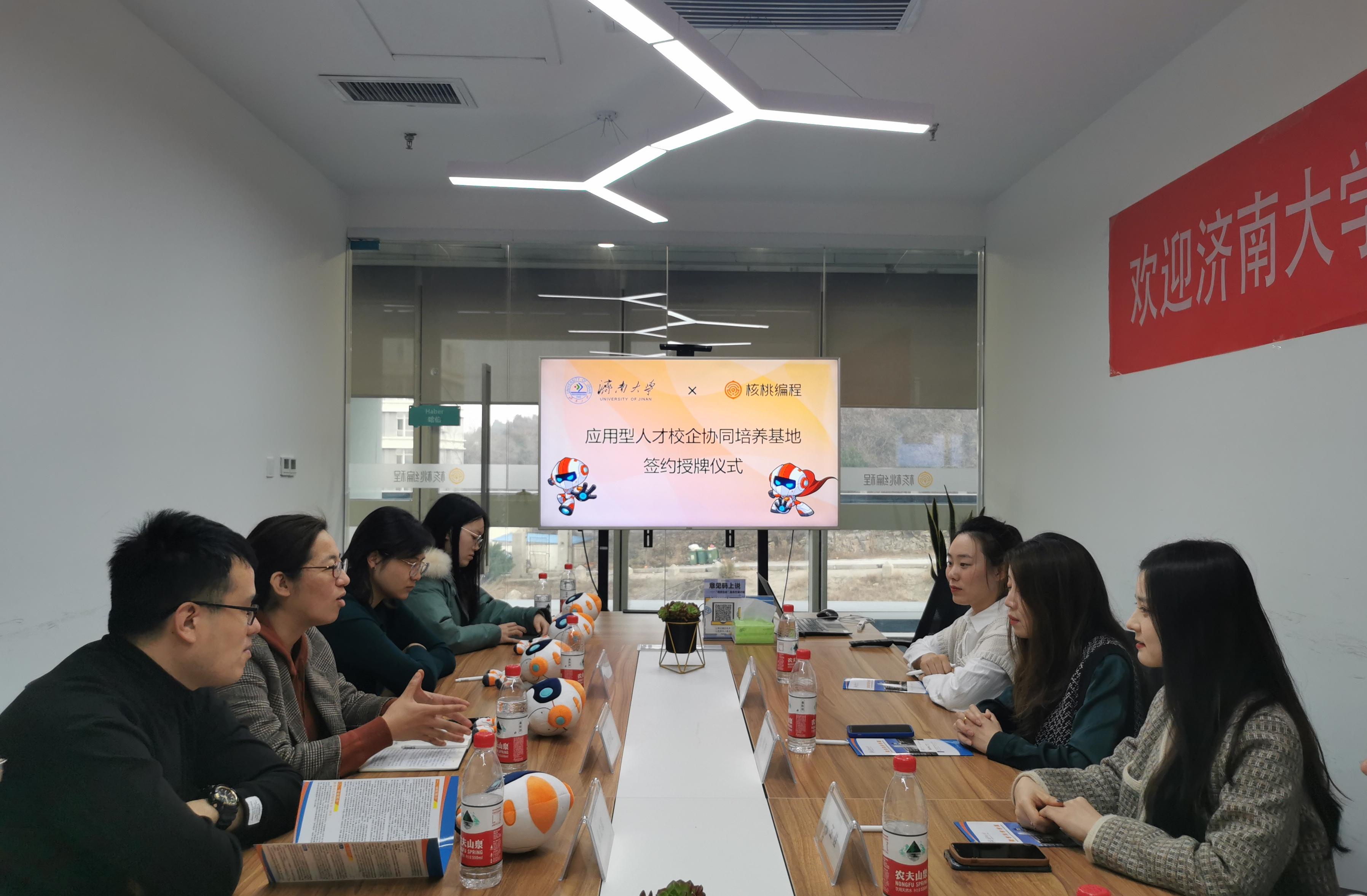 为进一步拓宽就业渠道,提高就业质量,12月9日,英国365集团官网走访核桃编程济南分公司并举行签约授牌仪式。北京核桃教育科技有限公司全国校招负责人倪妮,英国365集团官网党委副书记、副院长张沂红,辅导员吴立军、耿婉茹、2020届毕业生代表参加仪式。