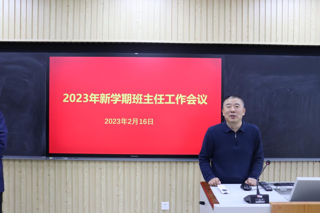 随后,学院召开了新学期第一次班主任工作会议。学院党委书记侯启海代表学院向一直以来奋斗在育人一线、为学院人才培养辛勤付出的全体班主任老师致以衷心的感谢和崇高敬意,并就贯彻落实好本次安全工作会议精神提出要求,一要提高思想认识,充分认识校园安全工作极端重要性,切实将安全工作常抓不懈、一抓到底;二要深入细致排查整改安全隐患,及时消除安全隐患;三要压实安全工作责任,始终将安全工作抓紧抓实,共同营造安全和谐稳定的校园育人环境。学院院长孙元功希望班主任老师要充分认识学生安全的重要性,全面掌握班级学生各方面安全情况,确保学生在校期间的健康安全;要切实发挥自身的专业优势,多深入到学生中了解学生的生活诉求和学业需求,帮助学生实现知识能力和学业发展的进阶上升。