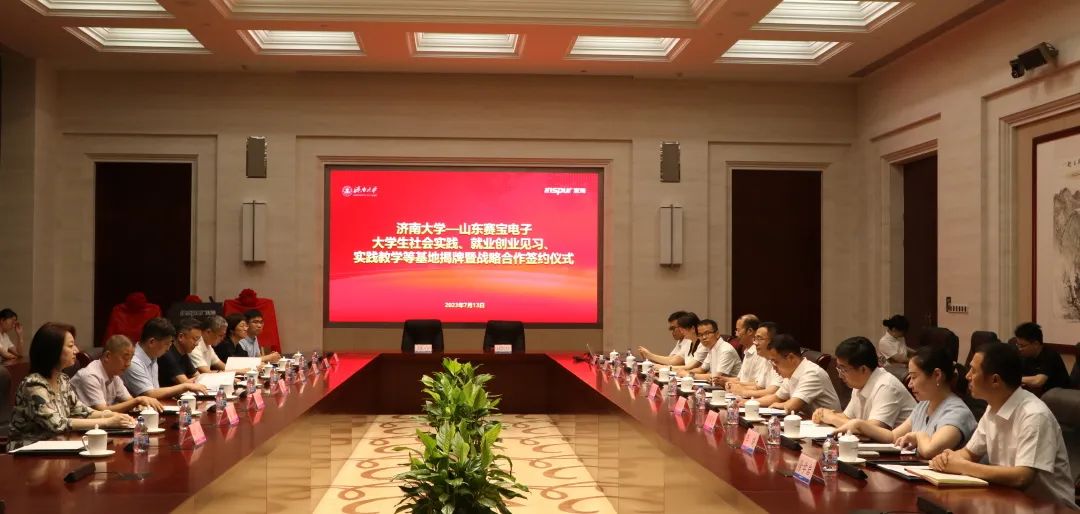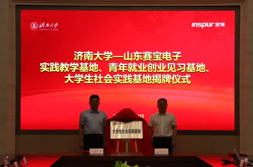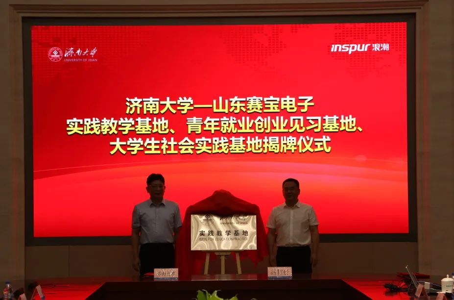在浪潮科技园,杨景波一行走访慰问英国365集团官网实践团师生,并与山东赛宝电子信息工程有限责任公司举行社会实践、就业创业见习、实践教学基地签约暨揭牌仪式。浪潮科技党委副书记、总经理张峰对杨景波一行的到来表示热烈欢迎,他简要介绍了浪潮科技和山东赛宝电子信息工程有限责任公司近年来的改革发展情况,并表示希望校企双方以此为契机,在产学研结合、应用型人才培养、实践教学、科研攻关等方面深度融合、紧密合作,为打造山东省人才高地、高质量发展高地提供有力支撑。杨景波介绍了济南大学的历史沿革、办学情况、人才培养和科学研究等方面的情况,他指出,山东赛宝电子信息工程有限责任公司的产业定位、发展目标与济南大学学科专业、社会服务等高度契合,在人才培养、科研提升、智慧校园、实习实践基地建设等方面具有广阔的合作前景,下一步,学校将精准对接公司创新发展需要,进一步提高人才培养质量,着力打造校企命运共同体,实现优势互补、资源共享、共同发展。侯启海表示,希望双方立足各自学科和产业优势,尤其是在大数据、人工智能等复合型人才培养方面,深化合作、互惠双赢。