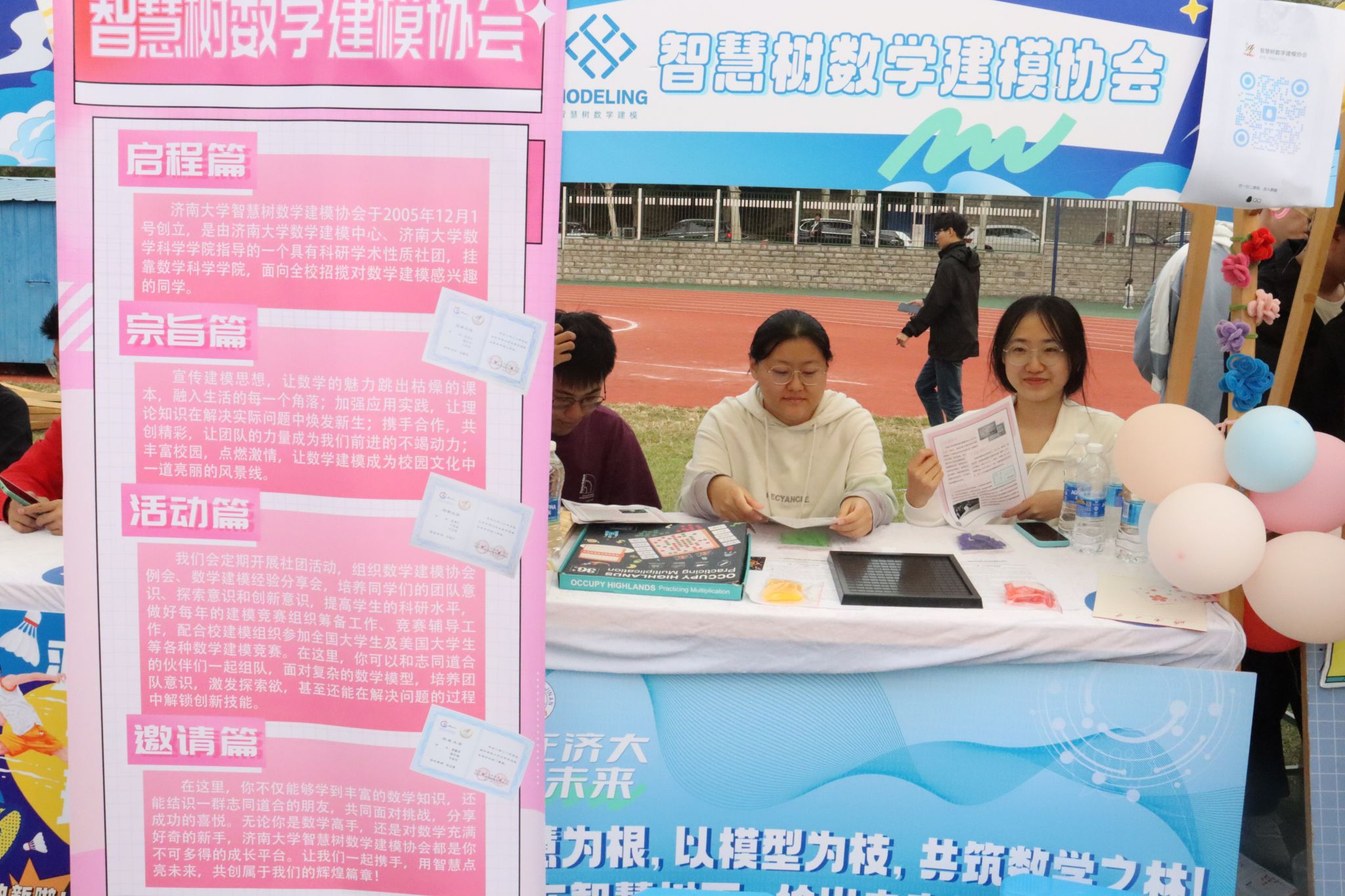 百团大“绽”,绽放青春色彩;社团嘉年华,奏响梦想乐章。济南大学社团嘉年华活动不仅为广大学子搭建了一个展示自我、交流思想的平台,更为新生们开启了一段探索自我、融入集体的旅程。在此次活动中,数星阁数学竞赛协会和智慧树数学建模协会向学子们充分展现了竞赛以及数学建模的无尽魅力,让更多学子体悟数学之美、了解数学之用、品悟数学之趣,让同学们对数学的热爱,在这里找到了归宿。让我们怀揣着这些美好回忆,期待下一次盛会的到来。