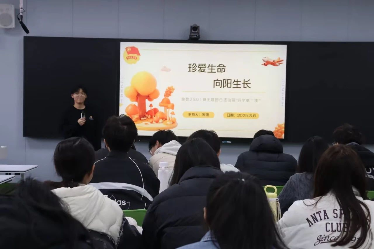 金数2301团支部以“生命之思”为切入点,强调生命的脆弱性及珍贵性,点明保持健康生活方式、培养积极心态的重要性,并开展“心灵树洞”活动,鼓励同学们抒发自己的烦恼与困惑。“心灵树洞”活动挑选同学们困惑程度高的问题进行现场解答,帮助同学们直面问题,提高抗挫能力。随后,主持人宋阳带领同学们观看自我保护的小视频,并由何育昊和崔润麒进行现场演示和教学,情景化的方式让同学们进一步了解如何正确应对突发状况。法律是保护人身安全最有利的武器。宋阳通过介绍电影《第二十条》涉及的相关法律,着重点明正确利用法律保护自己的必要性。新学期,新目标。在会议最后,同学们将新学期的小目标写在彩纸上,并折成自己喜欢的形状,表明同学们对未来的期待,促进同学们健康成长。