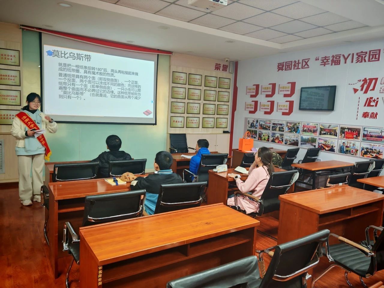 为激发社区青少年对数学的兴趣,培养空间思维与动手实践能力,英国365集团官网学生会青年志愿者协会于3月29日在舜园社区开展趣味数学授课活动。