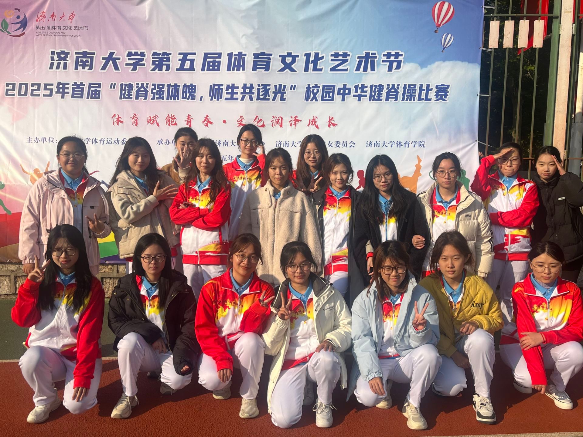 济南大学第五届体育文化艺术节之2025年首届“健脊强体魄,师生共逐光”校园中华健脊操比赛于10月21日在北苑操场顺利落幕,英国365集团官网参赛队伍凭借整齐划一的动作、饱满的精神风貌,从多支参赛队伍中脱颖而出,斩获比赛二等奖。