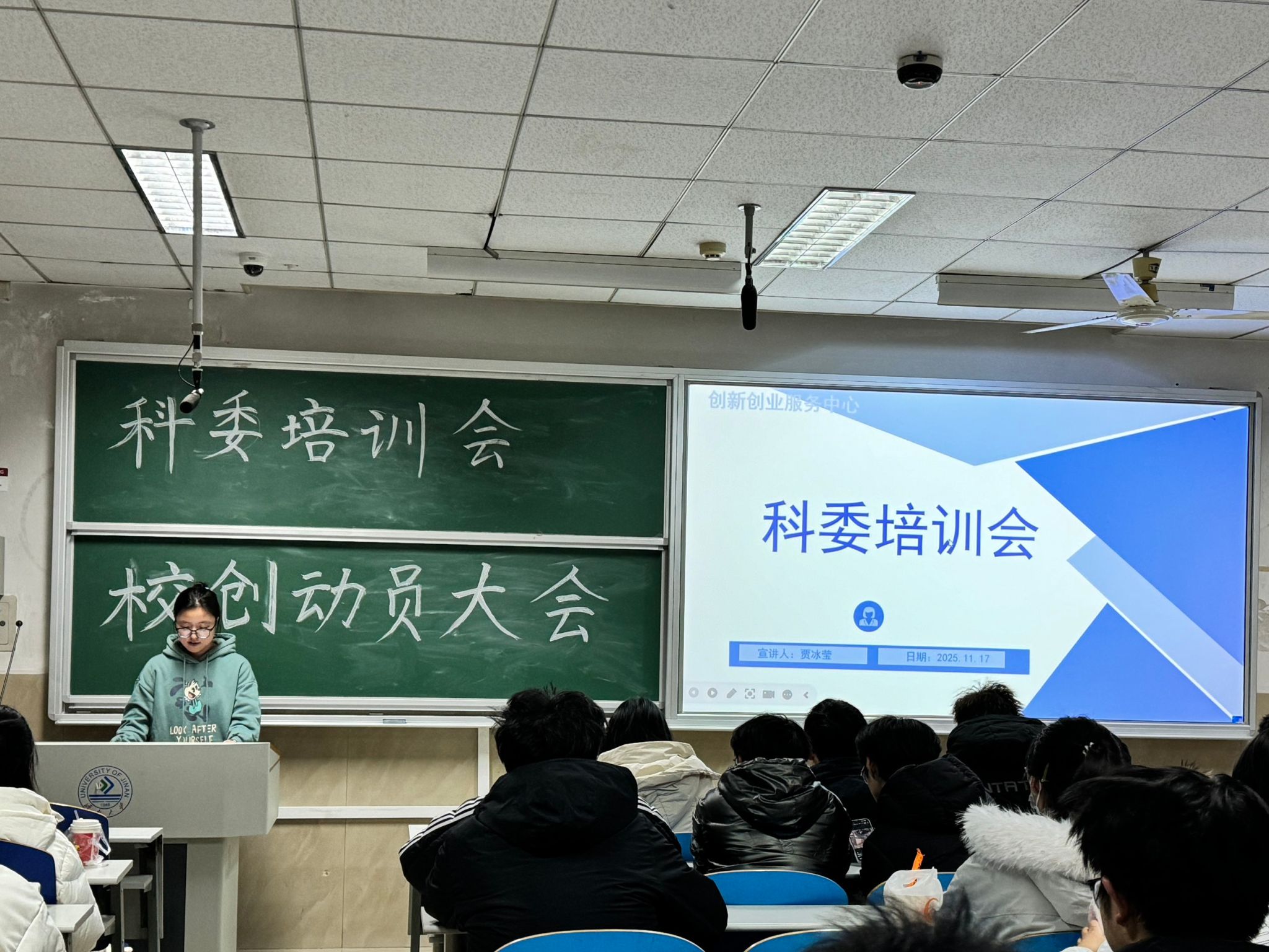 为保障校创项目的规范设计与高效收取,同时助力科创委员后续工作有序推进,我院学生会创新创业服务中心科技创新部于11月17日晚上七点在第一教学楼203教室召开校创项目收取专项科委培训会。23级、24级、25级各班科创委员及班长共同参与了本次会议。我院学生会创新创业服务中心科创创新部贾冰莹以创新创业服务中心介绍、科委职责、科委工作流程、校创注意事项四个方面展开会议。