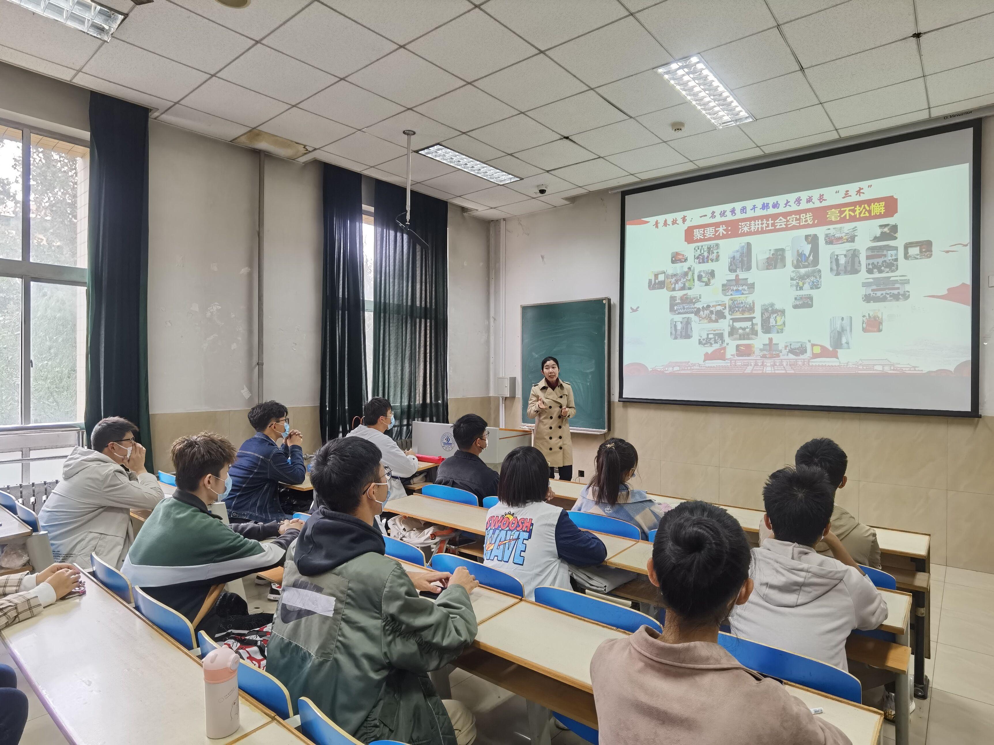 在本次团干部培训过程中,赵华磊老师为同学们全面介绍了团支部的工作目标、工作内容以及团干部素质培养方向,并以优秀的团干部张咬福同学在大学四年的成长经历为例,鼓励团干部要充分利用学院为同学们搭建的平台,发挥自身优势,全面发展。做一个有坚定理想、有实践精神、有学习能力、有创新意识的新时代青年。此外,赵华磊老师建议团干部应积极参与各类实践活动与科创赛事,深入比赛当中,不断积累经验,提升自己的综合能力。在团干部工作方面,赵华磊老师强调打铁还需自身硬,作为团干部更应有“等不起的责任感”和“慢不得的危机感”开展团支部工作,更应找准自己的定位,用专注的态度服务集体,以专业的水平做好工作。