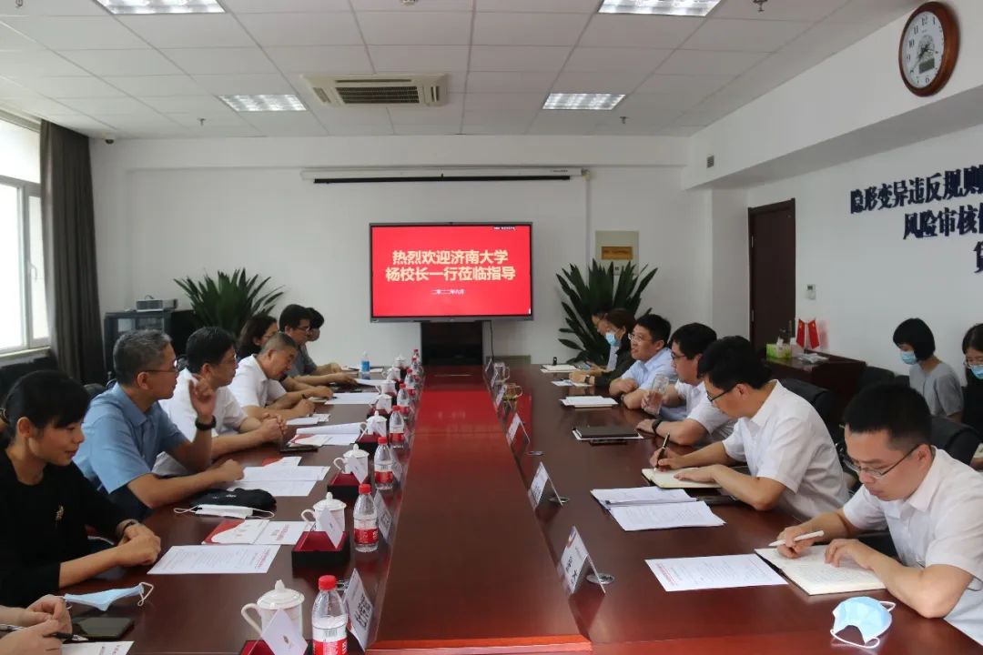 在山东国惠小额贷款有限公司,单一春介绍了公司“十四五”战略发展规划、基本情况、党建品牌、企业文化以及人才“引用育留”机制,表达了希望更多优秀毕业生加入企业的愿望。杨景波与杜冰共同为“济南大学就业实习基地”揭牌。孙元功、单一春代表校企双方共同签署了《共建济南大学毕业生就业基地协议书》。