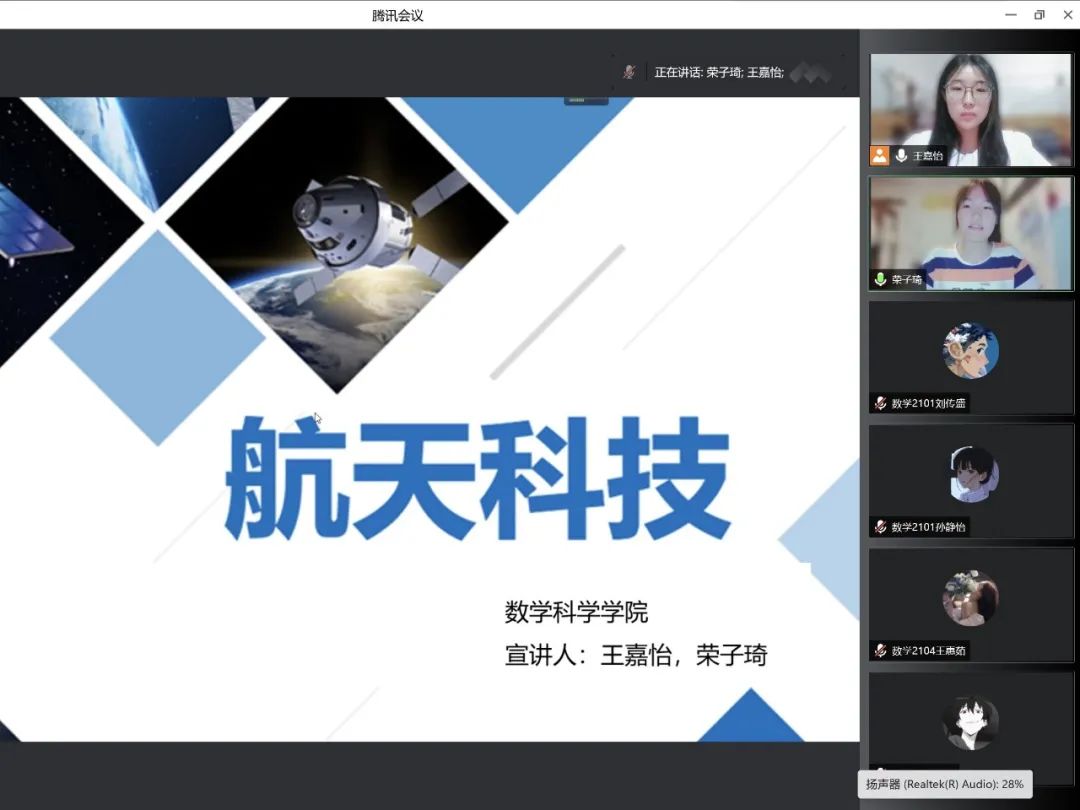 本次宣讲的主题是“航天科技”,宣讲过程中,宣讲员分别从“中国航天科技”、“中国航天发展历程”、“中国航天科技成果”、“航天技术发展意义”四个方面深入讲解,带领同学们领略前沿科技,走进大国工程。宣讲员讲到,自党的十八大以来,中国航天在太空书写下一个个“中国式浪漫”,重大工程成就举世瞩目,我国航天事业不断刷新纪录,航天科技水平实现跨越式发展,一次次飞天逐梦,一次次将梦想变为现实。习近平总书记指出:“探索浩瀚宇宙,发展航天事业,建设航天强国,是我们不懈追求的航天梦。” 回顾历史,展望未来,一代人有一代人的使命,我们作为新时代的青年,要时刻谨记伟大的航天精神,理论结合实际,让航天精神在日常的工作中发光发亮,不断增强自身能力,焕发出最美的青春力量。