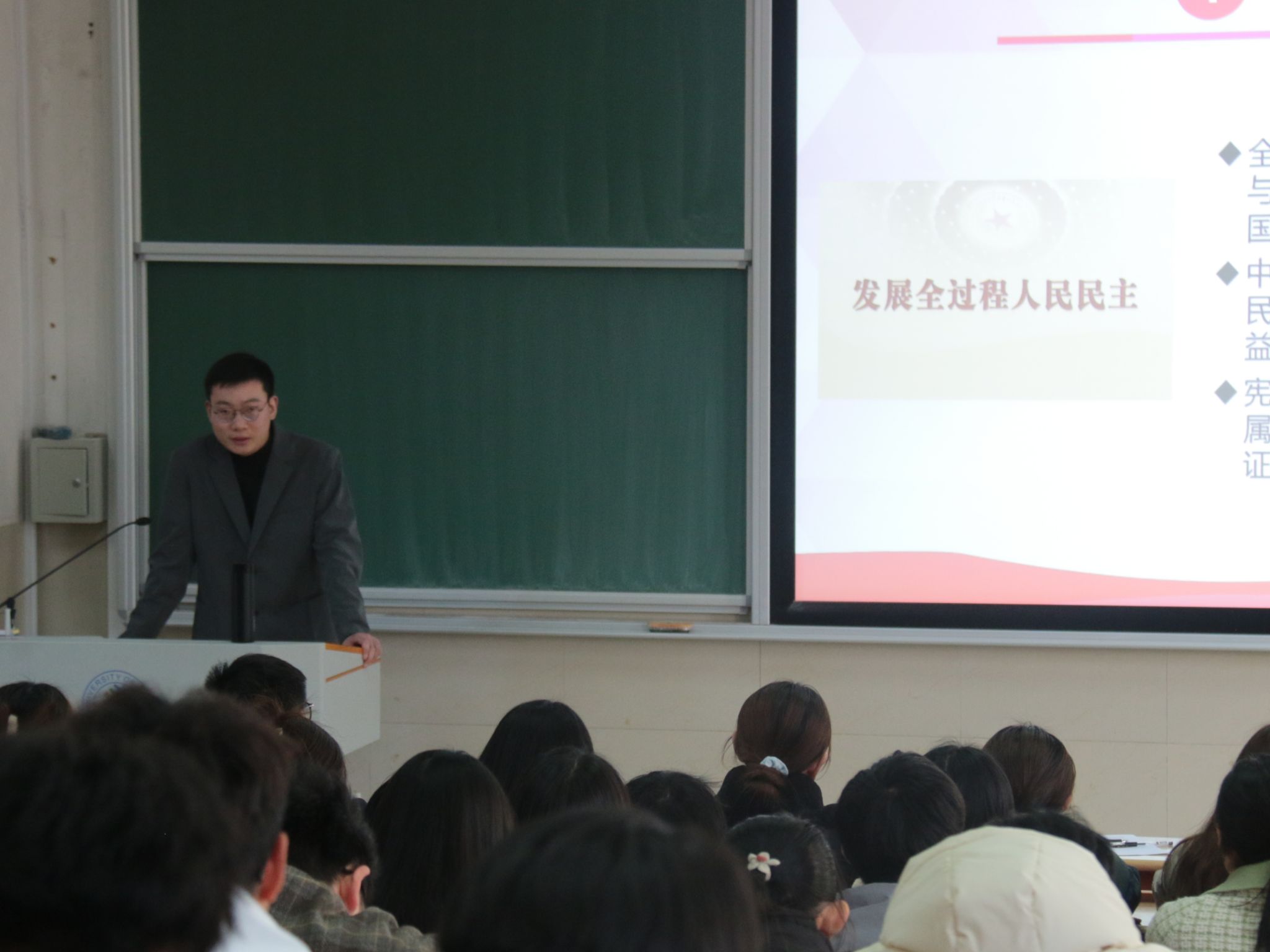 活动首先由李宁老师带领团员和青年学习了题为《坚定“四个自信”——全过程人民民主的生动实践》微团课,李宁从全过程人民民主的概念内涵出发,向大家详细讲述了什么是全过程人民民主,为什么要发展全过程人民民主,并要求广大团员和青年要坚定“四个自信”,为新时代添砖加瓦。接着,李宁与团员和青年们共同聆听十四届全国人大二次会议代表们的声音,深刻体会到全国“两会”是全过程人民民主的生动实践,不论是首位盲人人大代表王永澄在大会中的亮相,还是陆治原对于便捷养老服务的提倡,都体现了全过程人民民主是“摸”得着的民主,是全链条、全方位、全覆盖的民主,也是最广泛、最真实、最管用的民主。