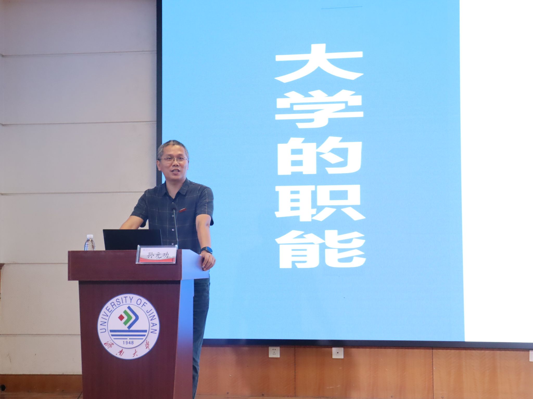 见面会后,学院院长孙元功为新生讲授“开学第一课”。孙元功以“大学”“学科”“专业”三个关键词为主线,介绍了学校的校史校情以及学院的历史沿革、学科建设、师资力量等,以生动的语言和翔实的数据带领新生了解济大,帮助新生树立正确的学业认知,并鼓励同学们能够勤奋学习、做好规划、保持定力,做一个勇于追求、乐于拼搏、有家国情怀的济大人。