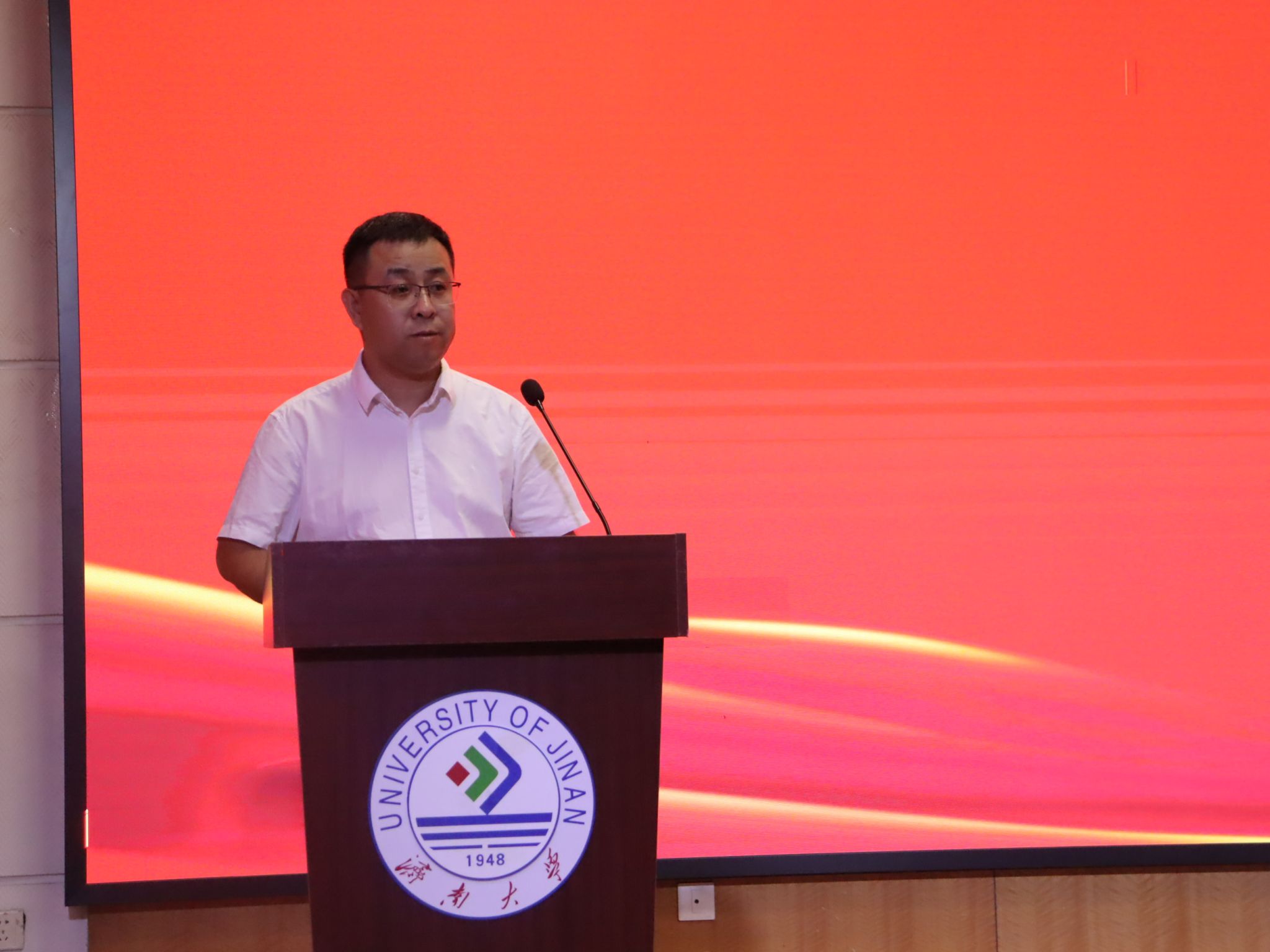 学院2007届信息与计算科学专业毕业生、山东浪潮智慧医疗科技有限公司副总经理、天津健康医疗大数据有限公司董事长胡焕钢作为优秀校友代表发言,分享了自己在济南大学的成长经历,表达了对母校和老师的怀念和感激之情,同时勉励同学们:一要珍惜大学时间,在热爱的事业上投入精力;二要成人先于成才,学会在批评中成长;三要践行终身学习,始终保持好奇心与求知欲,在济南大学这片热土上书写无愧于时代的青春华章。