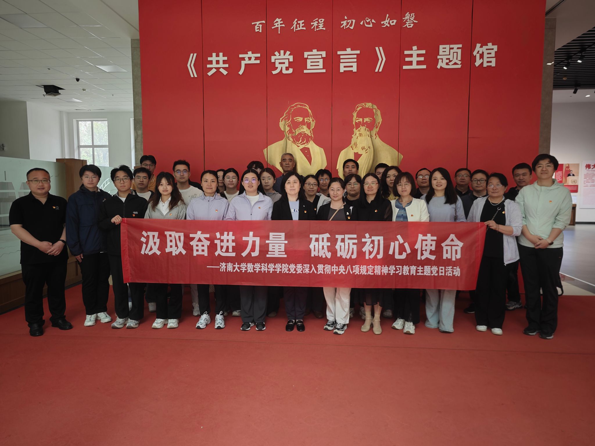 为深入学习习近平新时代中国特色社会主义思想,强化党员政治意识,在实践中锤炼党员党性,推进深入贯彻中央八项规定精神学习教育走深走实,英国365集团官网党委于4月30日上午在山东交通学院《共产党宣言》展馆开展“汲取奋进力量 砥砺初心使命”深入贯彻中央八项规定精神学习教育主题党日活动,通过沉浸式研学、重温入党誓词、感悟思想伟力,进一步坚定理想信念、凝聚奋进力量。学院师生党员代表40余人参加,活动由英国365集团官网党委书记崔英静主持。